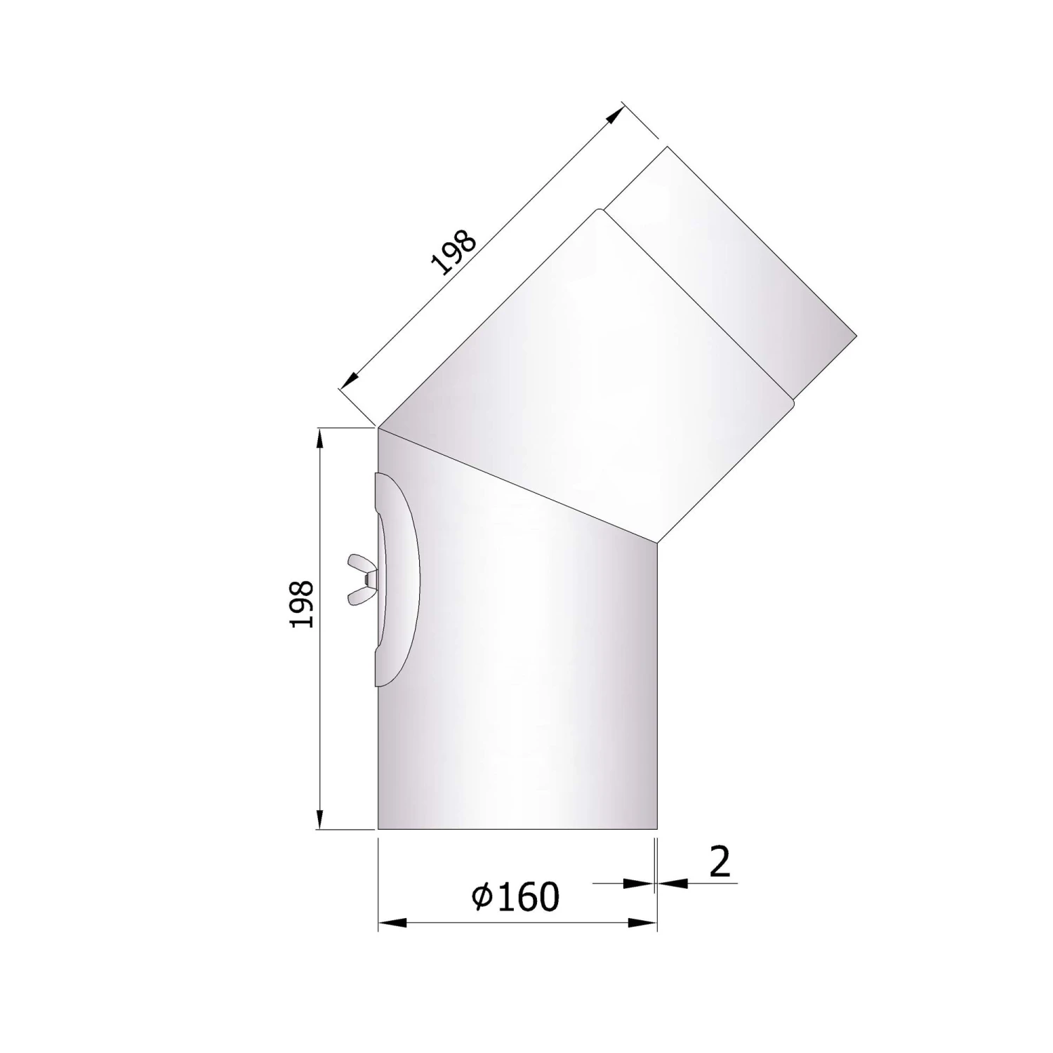 Rauchrohrbogen 45° mit Tür unlackiert